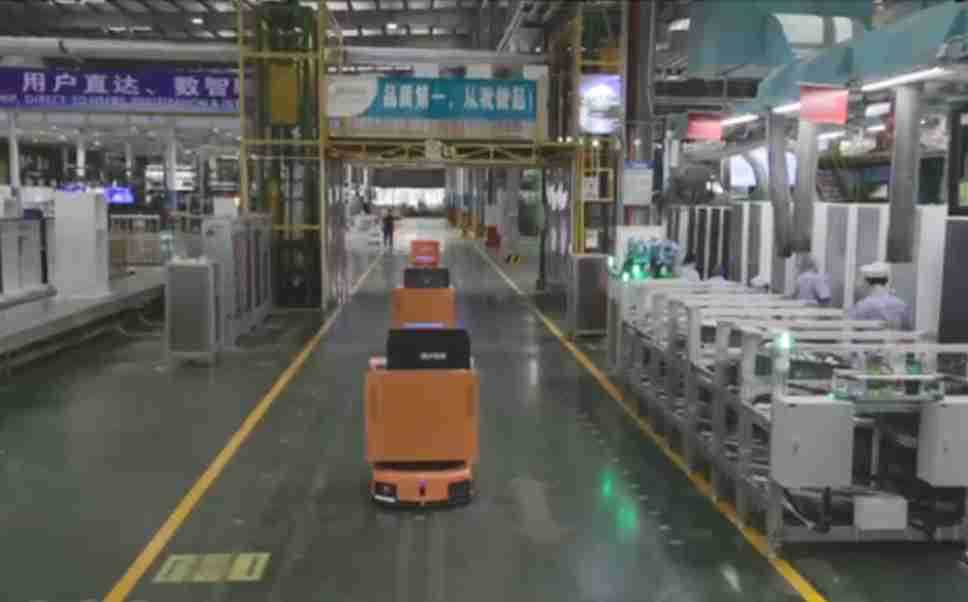 为车载冰箱物流配送打造的智能解决方案,,,包含产中物流通过潜伏举升AMR搬运至线边,,,,产后成品物流智能仓储,,,流程包含产中物流智能齐套入库,,线边安灯叫料AMR智能配送至线边,,,,成品入库、、、出库,,通过无人堆高车机器人,,,智能仓储管理替代人工作业管理,,,,实现更高存储、、、更高效率、、、、更具柔性化的解决方案。。